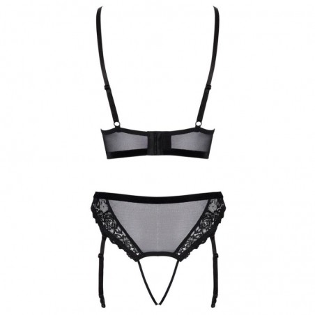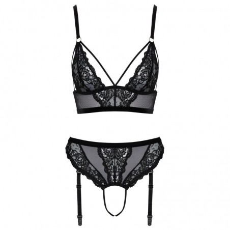 Open thong made of tasteful lace, decorated with rhinestones.