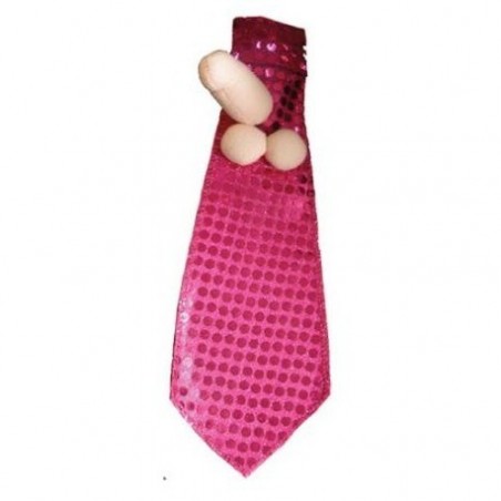 Corbata con lentejuelas, en fucsia, y pene. Ideal para despedidas o cualquier fiesta.