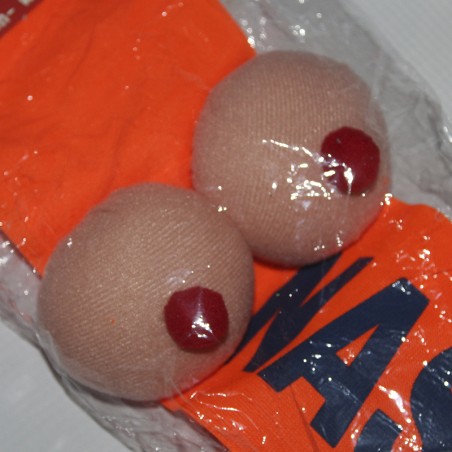 Incluye tetas de peluche en la parte superior, cogidas con imperdible.