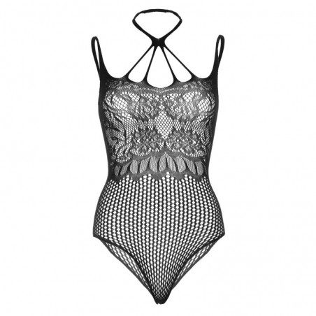 Este body de lencería presenta un delicado top de encaje negro, un tirante de varias tiras y la parte inferior de rejilla. Hazte con este conjunto para una cita nocturna o combínalo con tus vaqueros favoritos para un look de fiesta perfecto.