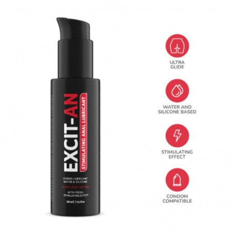 Excit-an es un lubricante estimulante híbrido a base de agua y silicona ideal para el sexo anal. Especialmente formulado para lubricar las partes más sensibles y delicadas del cuerpo.