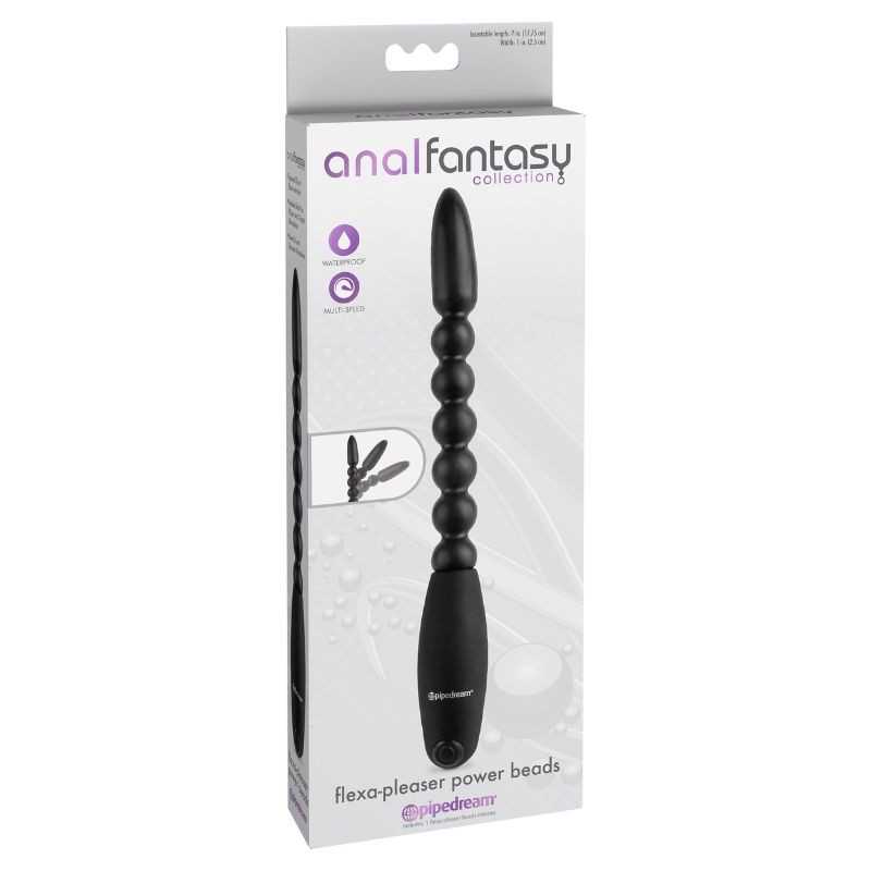 Con 2,5 cm de ancho y una longitud insertable de 17,75 cm, las Flexa-Pleaser Power Beads tienen una punta cónica para facilitar la entrada y alcanzar el punto exacto