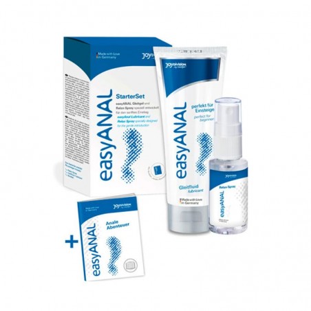 EasyAnal Starter Set es un pack que se compone por: spray relajante de 30 ml, lubricante deslizante de 80 ml y un folleto con consejos.