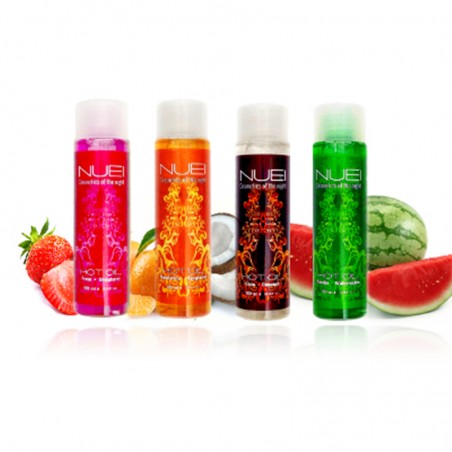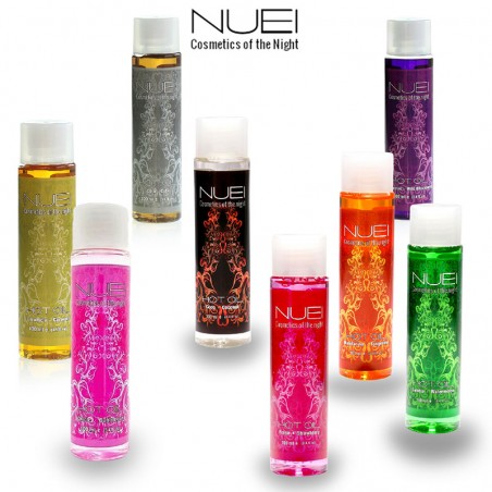 Los geles de masaje Hot Oil de Nuei contienen extractos de Ginseng, un estimulante natural de propiedades tonificantes y afrodisiacas. Un auténtico ritual para los sentidos a base de aromas intensos y embriagadores. Compatibles con látex, preservativos, juguetes eróticos de todo tipo, incluidos los de silicona, y son ideales para disfrutar también durante el sexo oral.