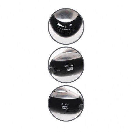 La unidad de control compacta Luv Touch envía impulsos eléctricos a las pinzas y pueden usarse solo como un masajeador manual o junto con las pinzas. Para usar el control como un masajeador manual, cambia al modo "IN". La pieza central ovalada brinda el impacto una vez que tu palma toca cualquier otra parte del metal. Para usar la unidad de potencia con las pinzas, pónla en el modo "OUT" y conecta la clavija de conexión de la pinza.