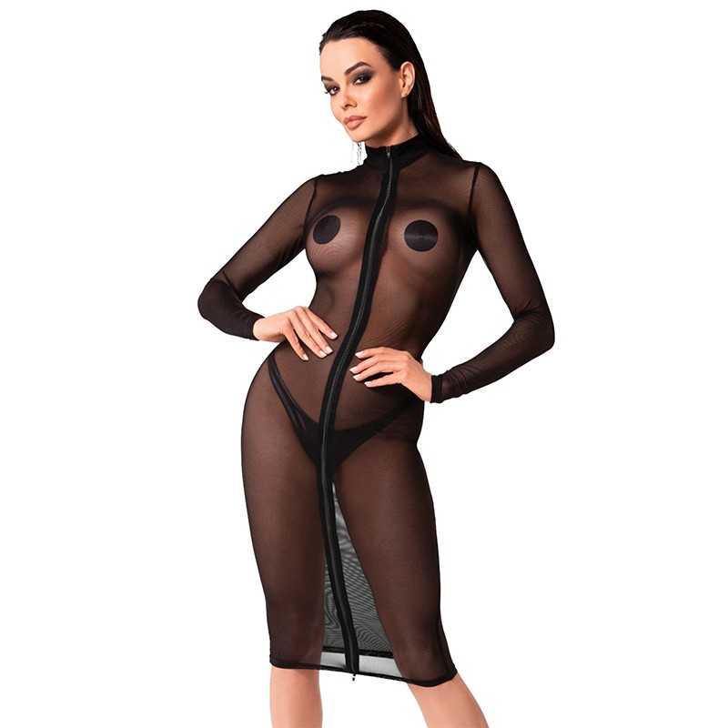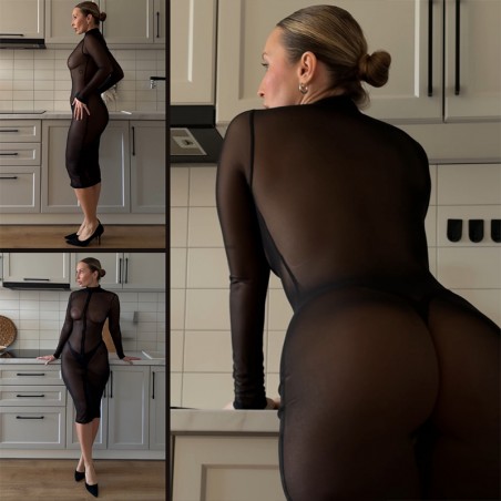 Este atrevido y seductor vestido transparente está confeccionado en malla suave y transparente, diseñado para marcar la diferencia y dejar entrever lo que se esconde debajo. Disponible de la S a la 3XL.