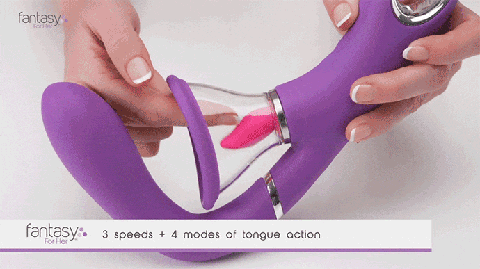 ¡El multicampeón! Her Ultimate Pleasure Pro de Fantasy For Her combina un vibrador de punto G con una ventosa vibro-lengua para una estimulación simultánea en la vagina y en el clítoris.